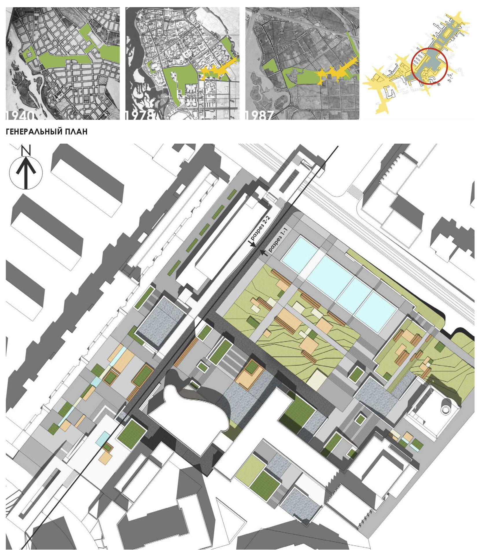 Необходимо восстановить стилевые решения комплекса существующих зданий, такие, например, как плоские кровли или панорамное остекление. Мощение и малые архитектурные формы, «маркирующие» объекты рассредоточенного общественного центра, должны отвечать ключевым признакам стиля.